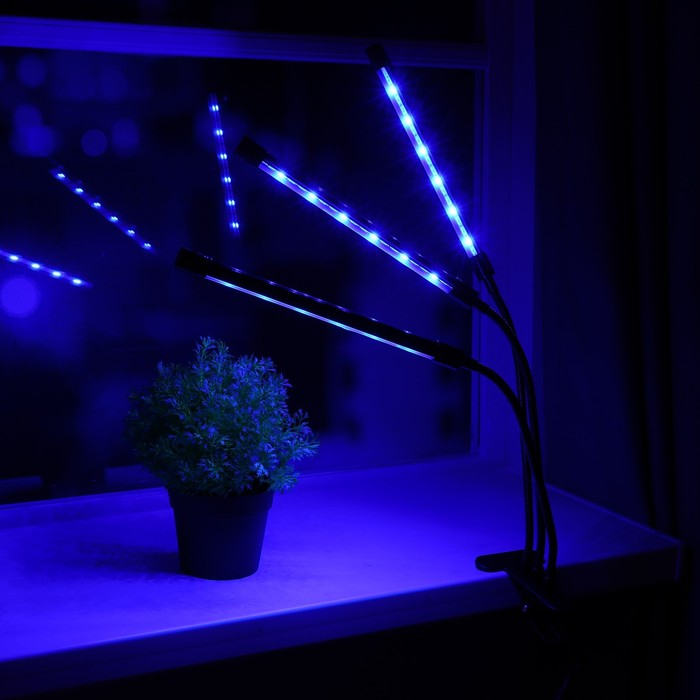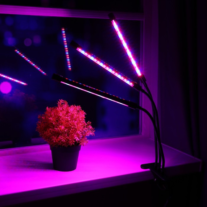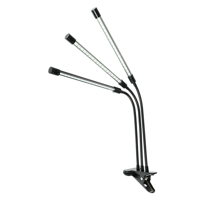 Фитосветильник светодиодный, 9 Вт, 250 мм, IP66, 5 В, USB, биколорный, прищепка, с таймером