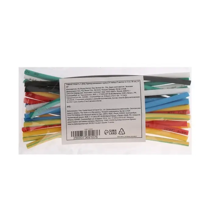 Термоусаживаемая трубка 2/1 набор (7 цветов по 3 шт, 10 см), 21 шт