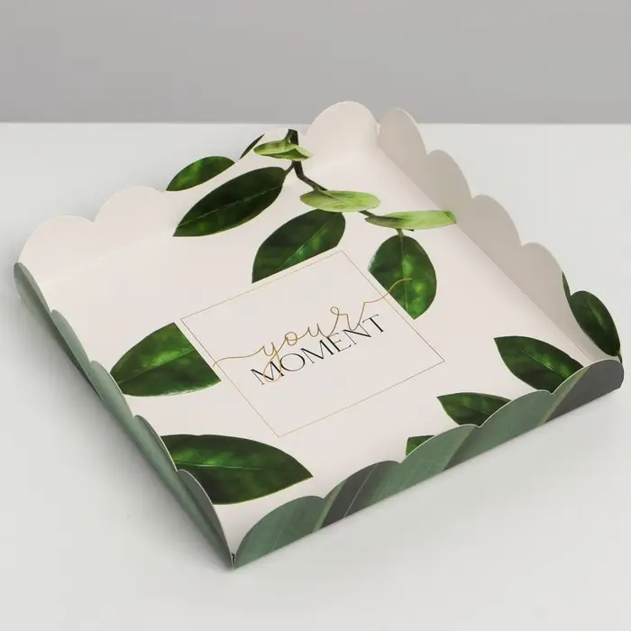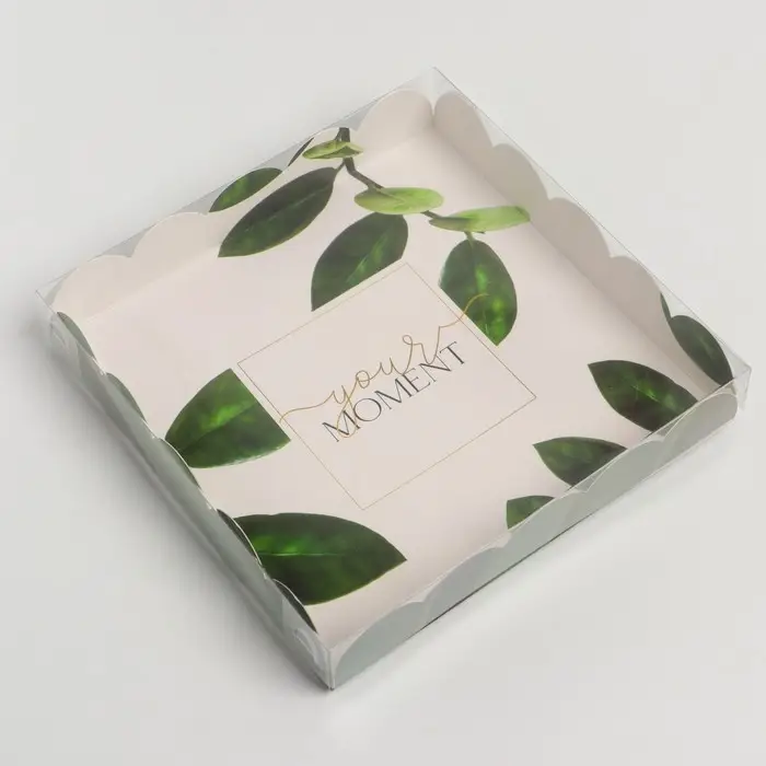 Коробка для печенья, кондитерская упаковка с пластиковой крышкой, «Эко», 18 х 18 х 3 см