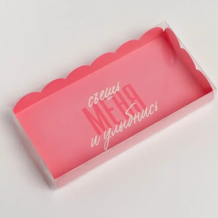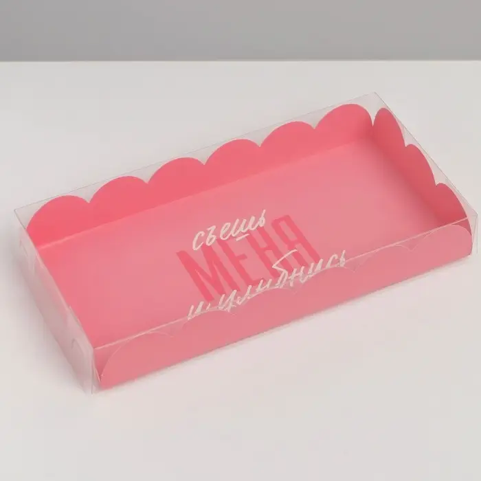 Коробка для печенья, кондитерская упаковка с пластиковой крышкой, «Съешь меня и улыбнись», 10.5 х 21 х 3 см