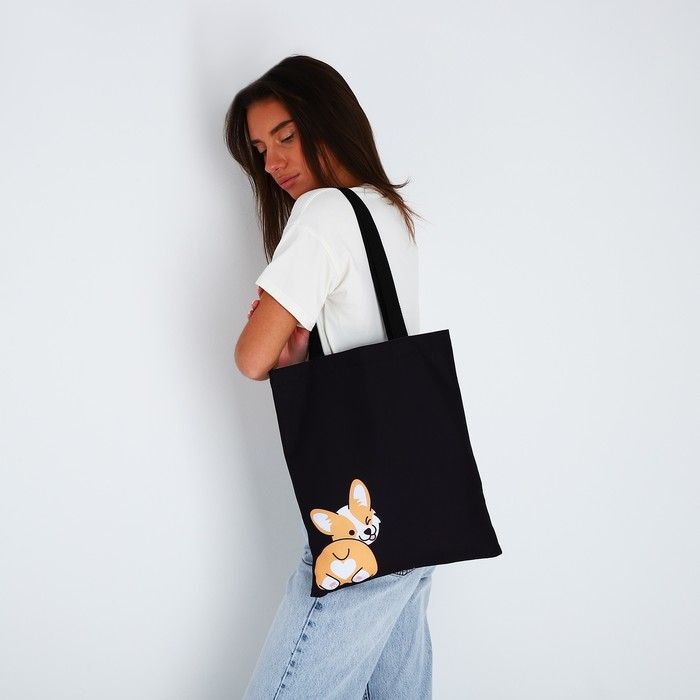 Сумка-шопер «Корги», без молнии, без подкладки, цвет чёрный