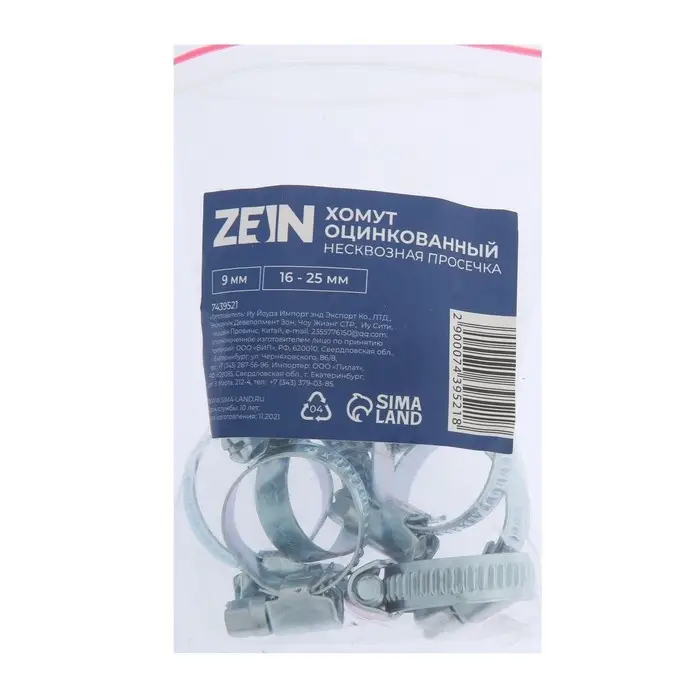 Хомут червячный ZEIN engr, несквозная просечка, диаметр 16-25 мм, ширина 9 мм, оцинкованный