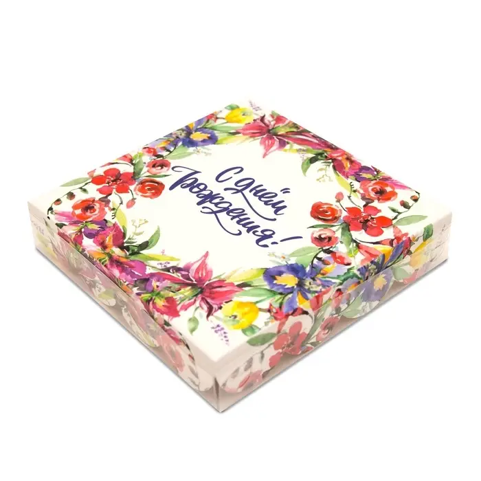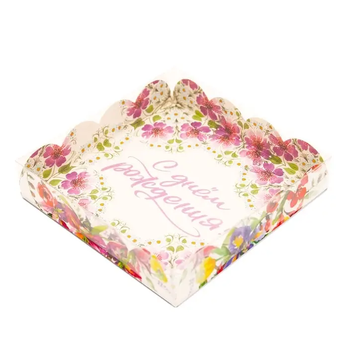 Коробка для печенья, кондитерская упаковка с PVC крышкой, My best wishes, 21 х 21 х 3 см