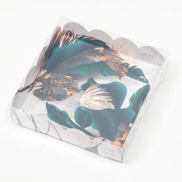 Представляем вашему вниманию стильную и практичную коробку для печенья с прозрачной ПВХ-крышкой – идеальное решение для упаковки различных товаров, включая подарочные наборы, десерты и аксессуары.
