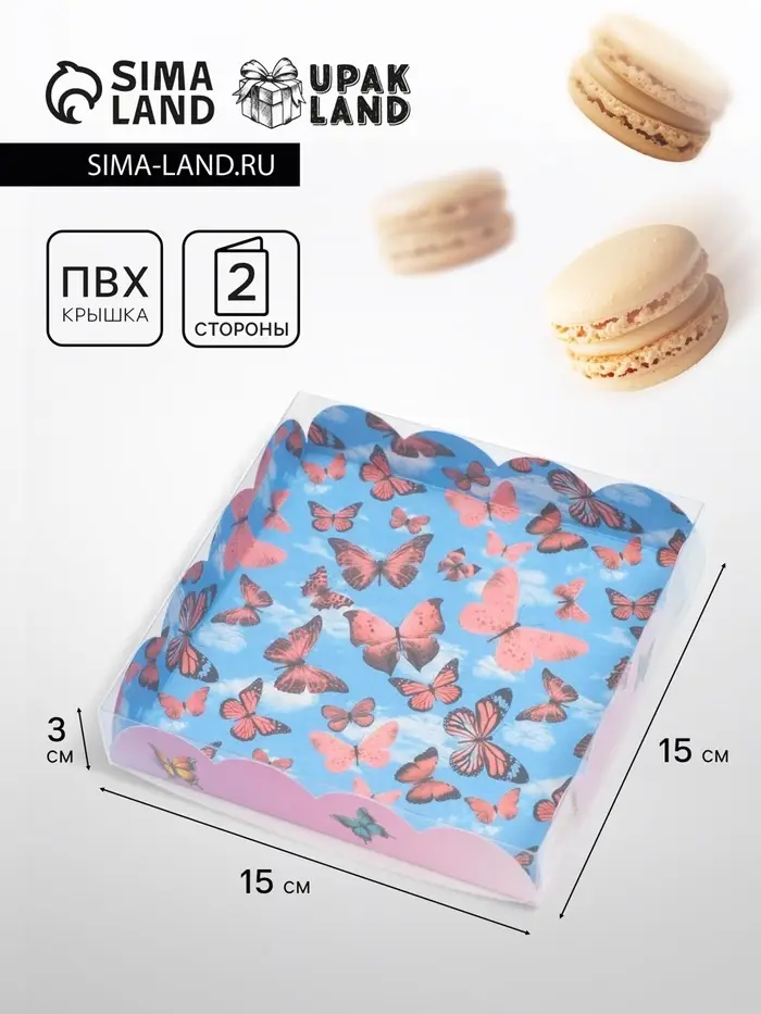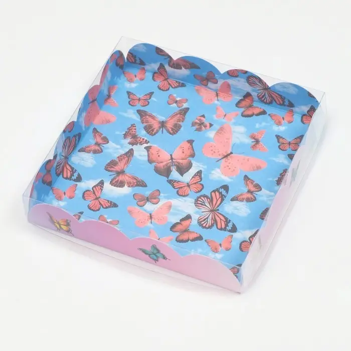Коробка для печенья, «Бабочки в небе», 15×15×3 см