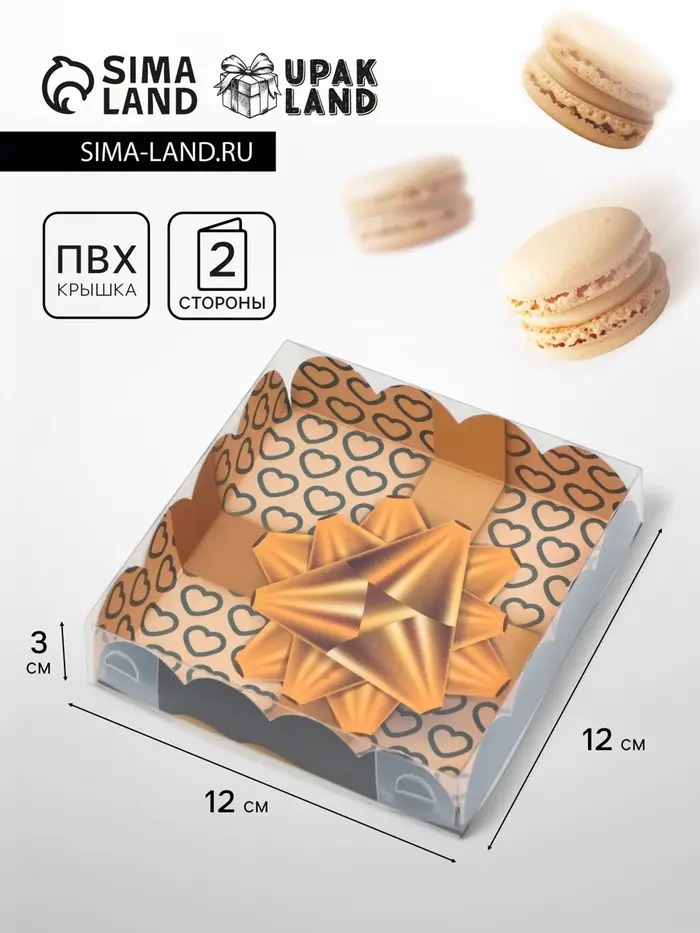 Коробка для печенья, «Золотой бант», 12×12×3 см