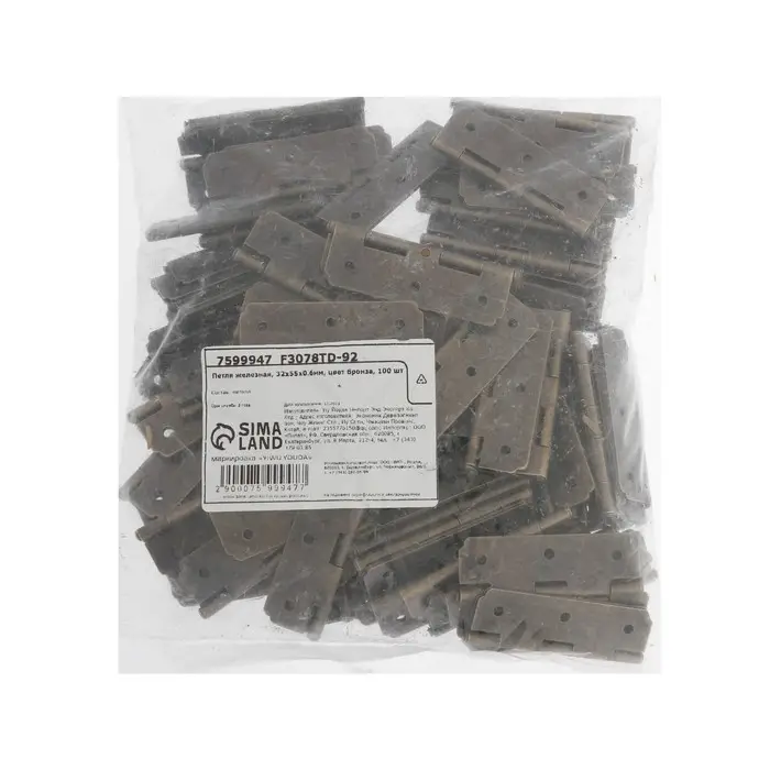 Петля железная, 32×55×0.6 мм, цвет бронза, 100 шт.