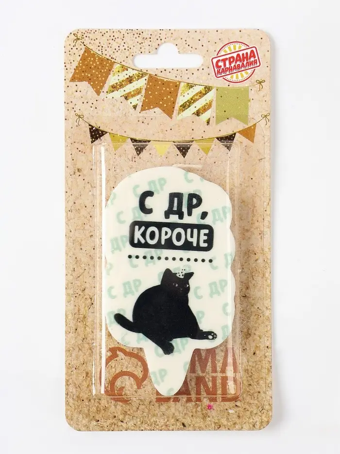 Свеча для торта «С др, короче», 6.5 см, белая