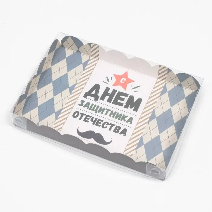 Коробка для печенья, кондитерская упаковка с PVC крышкой, «23 февраля», 21 х 21 х 3 см