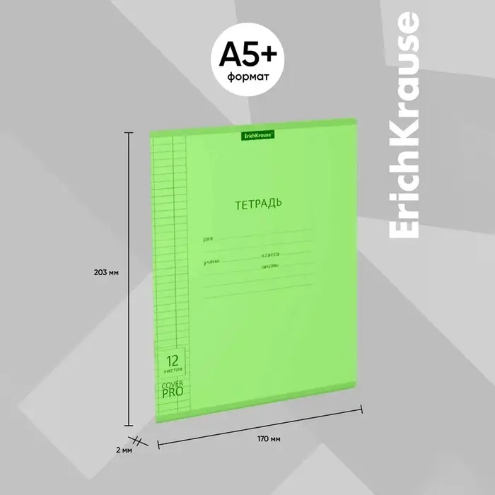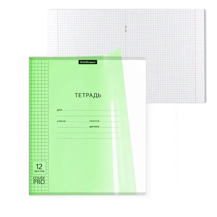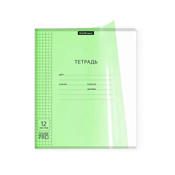 Тетрадь 12 листов, ErichKrause «Классика CoverPrо Neon», в клетку, пластиковая обложка, блок офсет, 100% белизна, зеленая