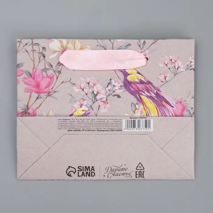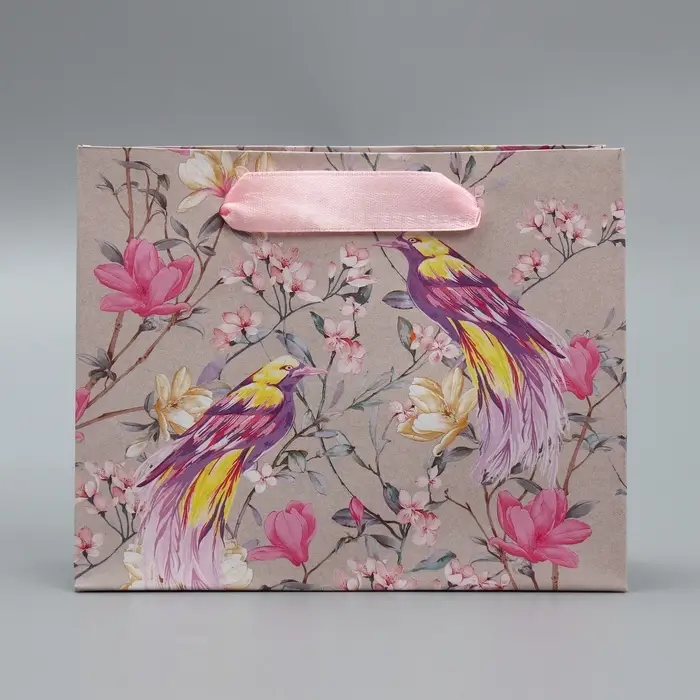 Пакет подарочный крафтовый, упаковка, «Птицы», S 15 х 12 х 5.5 см