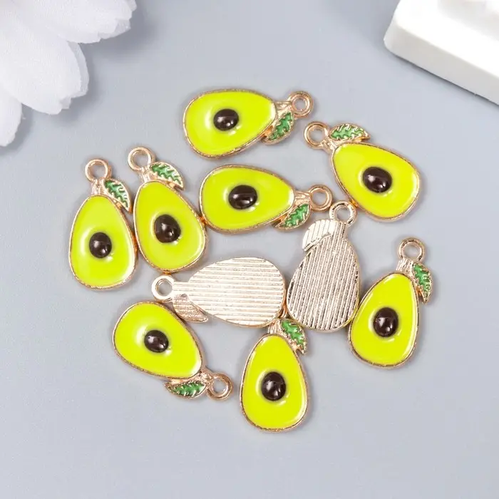 Декор для творчества металл, эмаль "Авокадо" зелёный 1,7х1 см