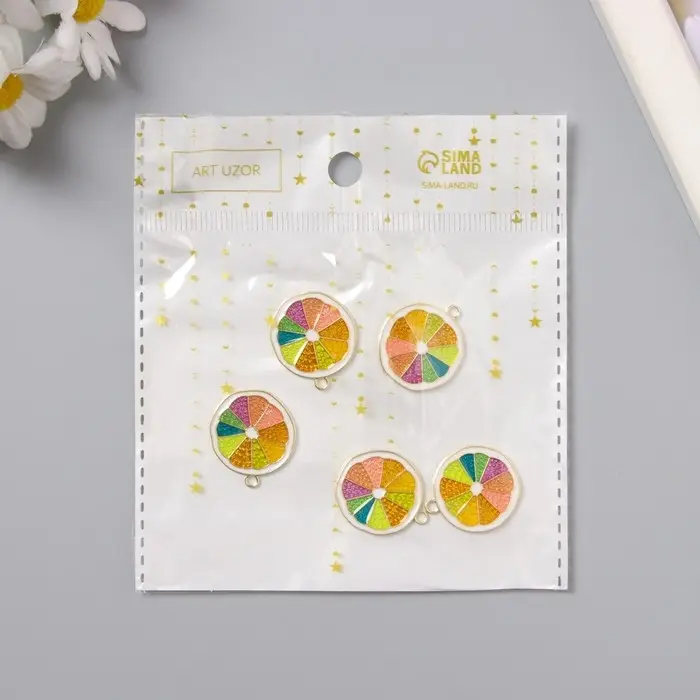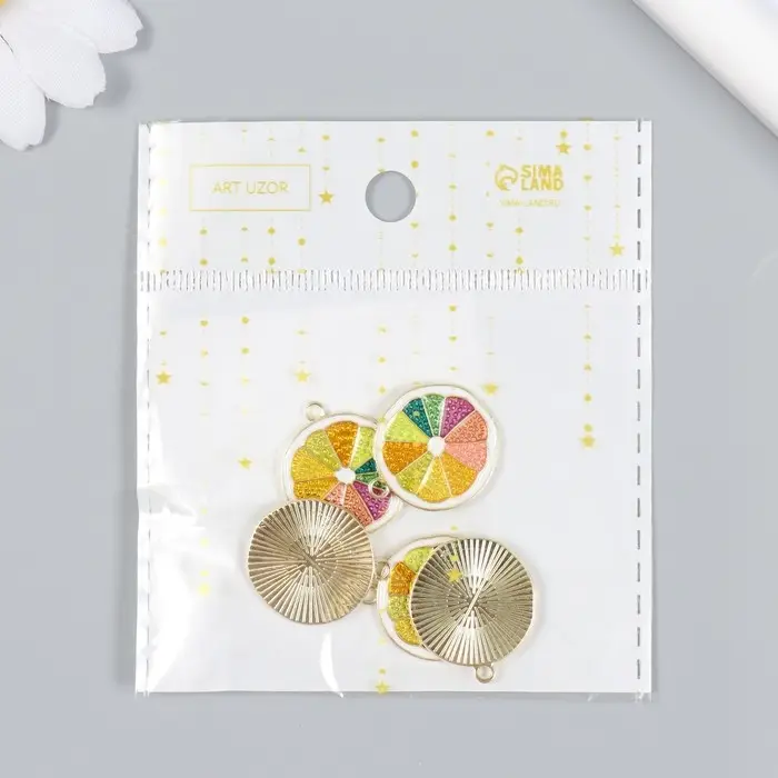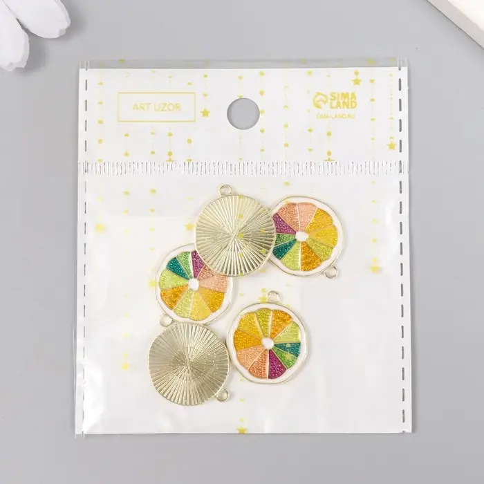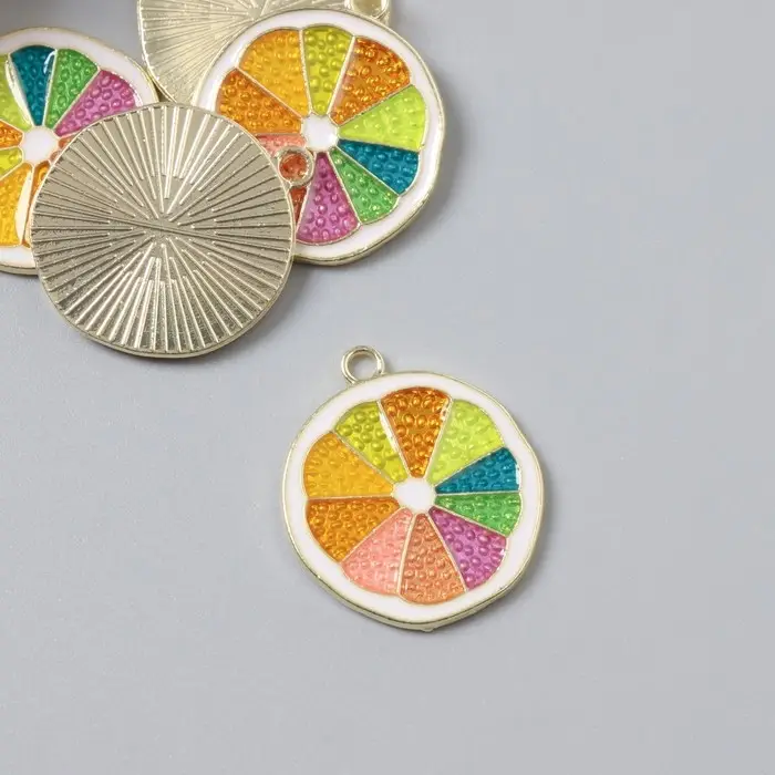 Декор для творчества металл, эмаль "Грейпфрут" 2х2,2 см