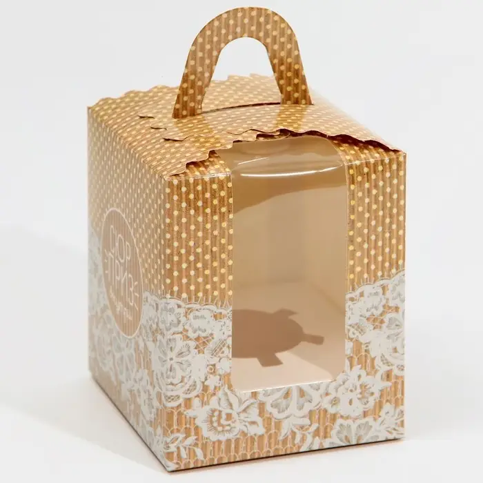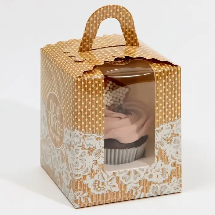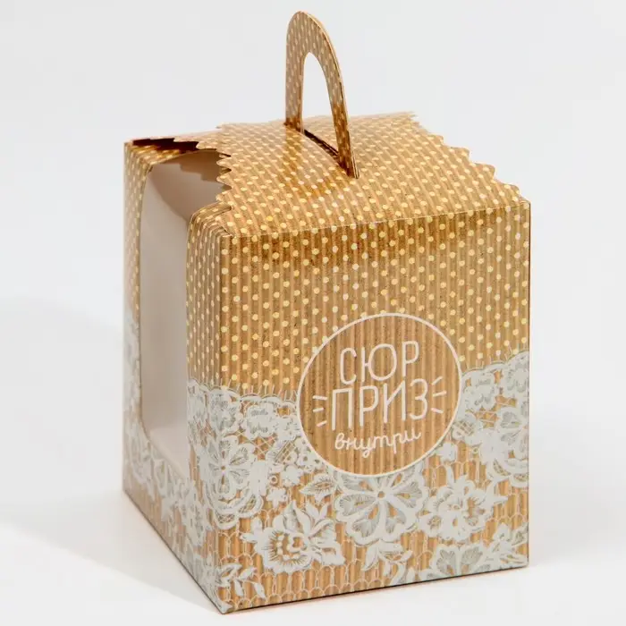 Коробка для капкейков, кондитерская упаковка, 1 ячейка «Сюрприз внутри», 9 х 9 х 11 см