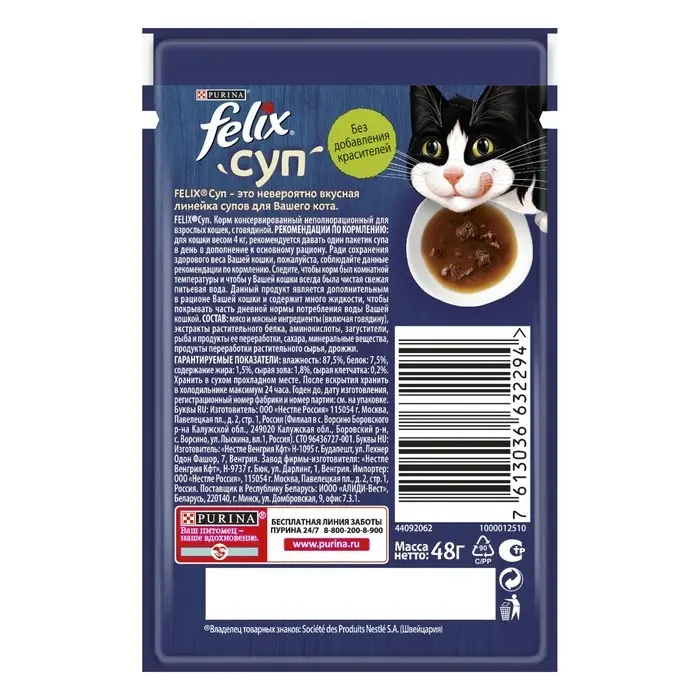 Влажный корм Felix Суп с говядиной, для кошек, 48 г