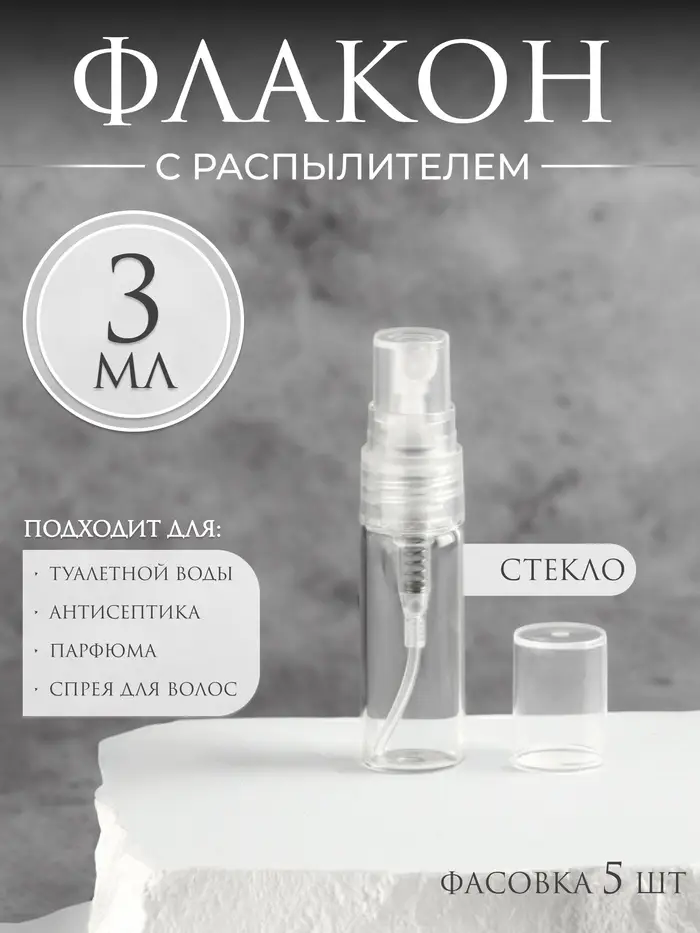 Флакон стеклянный для парфюма, с распылителем, 3 мл, прозрачный