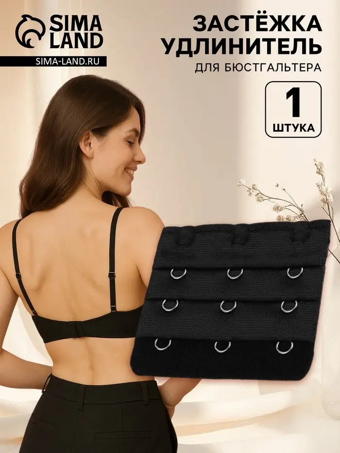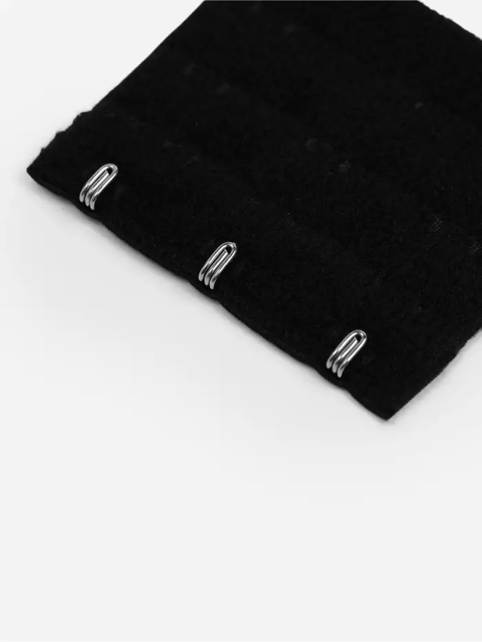 Удлинитель для застёжки бюстгальтера — практичное решение для комфортной носки нижнего белья. Трёхрядный крепёж с тремя крючками обеспечивает надёжную фиксацию и равномерное распределение нагрузки на спину. Чёрный цвет сочетается с большинством моделей, а прочный материал выдерживает длительную эксплуатацию.