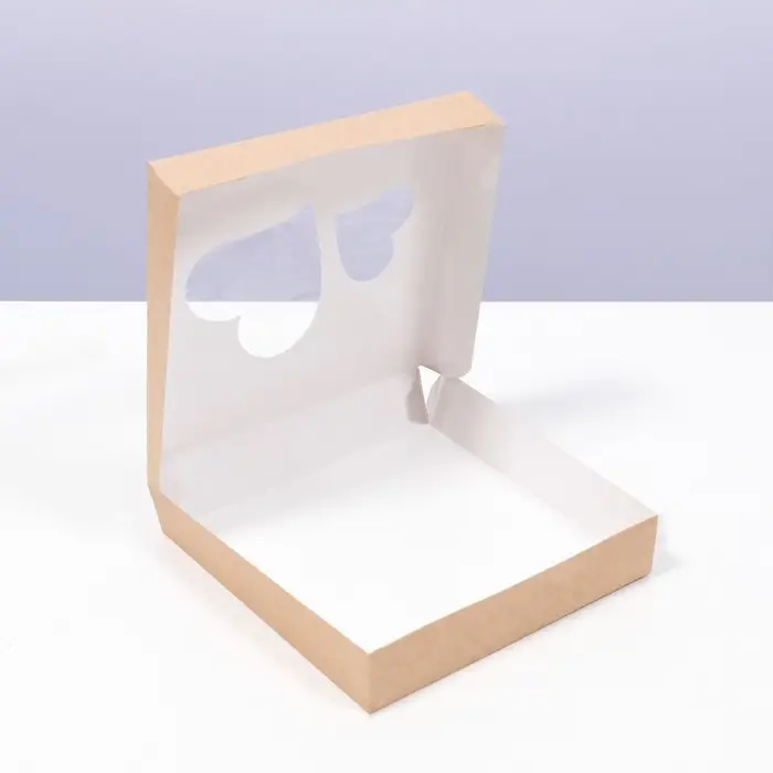 Коробка складная «Сердца», крафт, 20×20×4 см