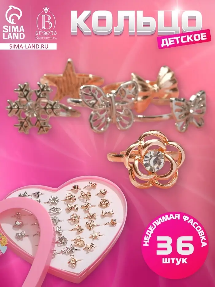 Кольцо детское «Выбражулька» ассорти для девочек, форма МИКС, цвет МИКС, безразмерное