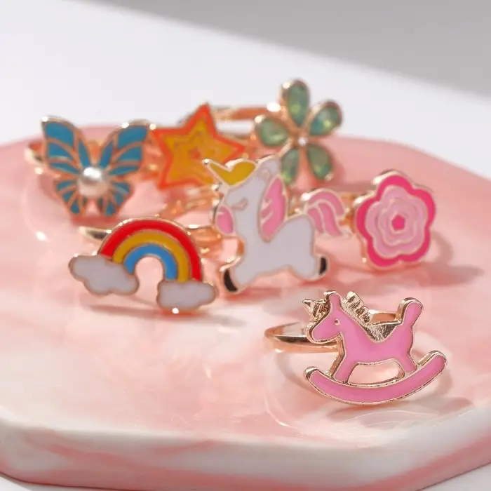 Этот аксессуар идеально подходит для маленьких мечтателей, добавляя в образ нотки сказочности и волшебства. Цветные элементы и креативные формы делают кольцо уникальным и привлекательным. Оно станет отличным дополнением к любому наряду, будь то повседневный стиль или праздничный образ, при этом легко сочетаясь с другими украшениями.