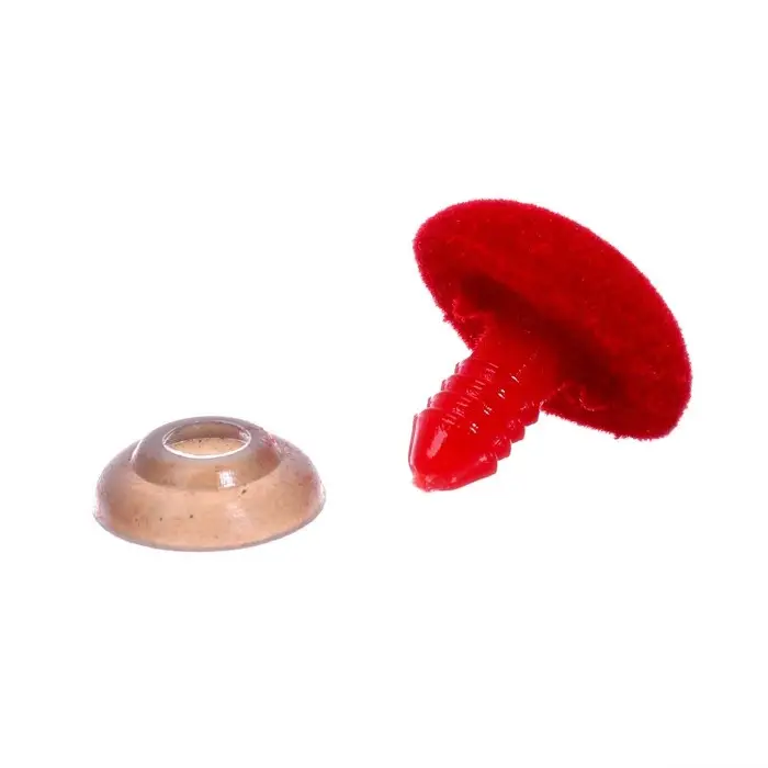 - С изнаночной стороны на винт оденьте шайбу и задвиньте до упора, плотно прижимая нос к ткани.