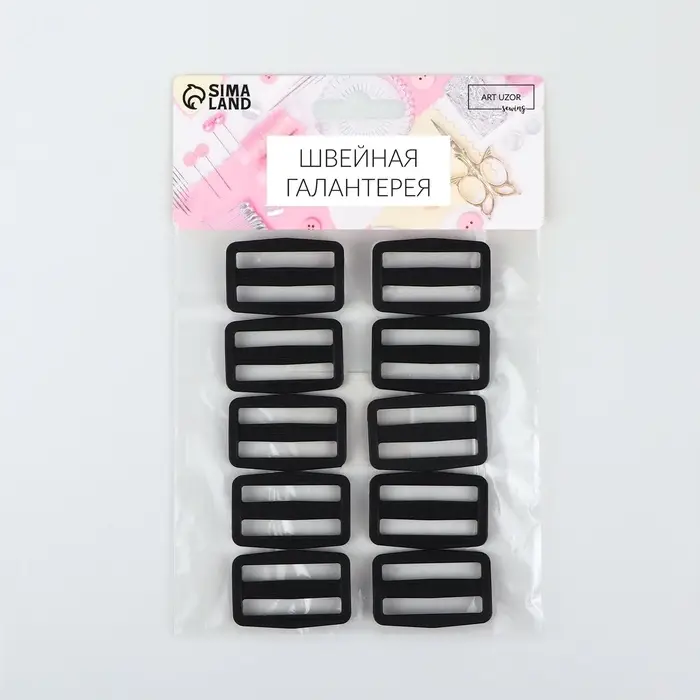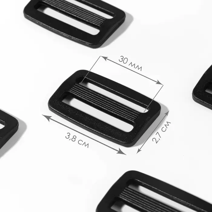 Пряжка регулирующая, двухщелевая, вн. ширина=30 мм, s=4 мм, 10 шт., чёрная