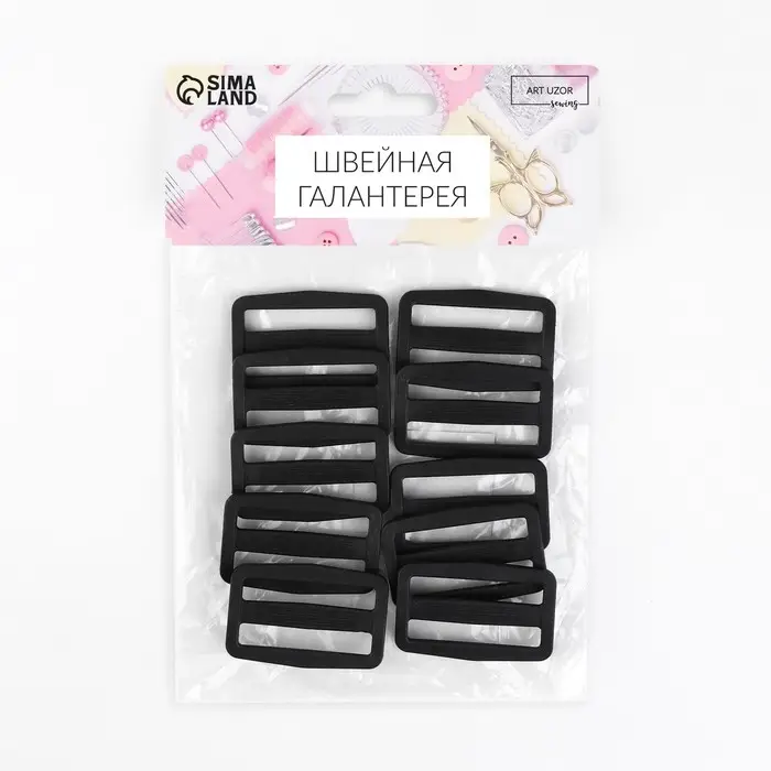 Пряжка регулирующая, двухщелевая, вн. ширина=38 мм, s=3.5 мм, 10 шт., чёрная