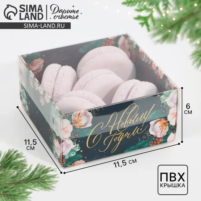 Коробка для кондитерских изделий с пластиковой крышкой «Хлопок», 12 х 6 х 11.5 см