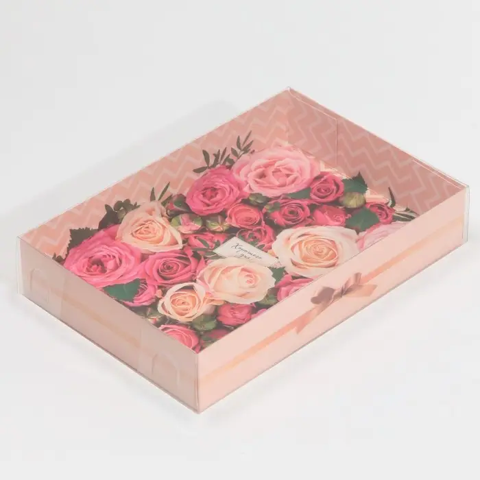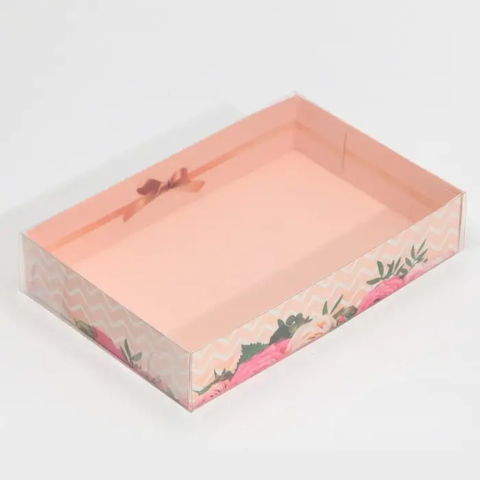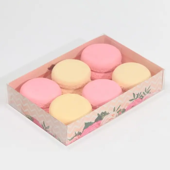 Кондитерская упаковка, коробка для макарун с PVC крышкой, «Цветы», 18 х 12 х 3.5 см