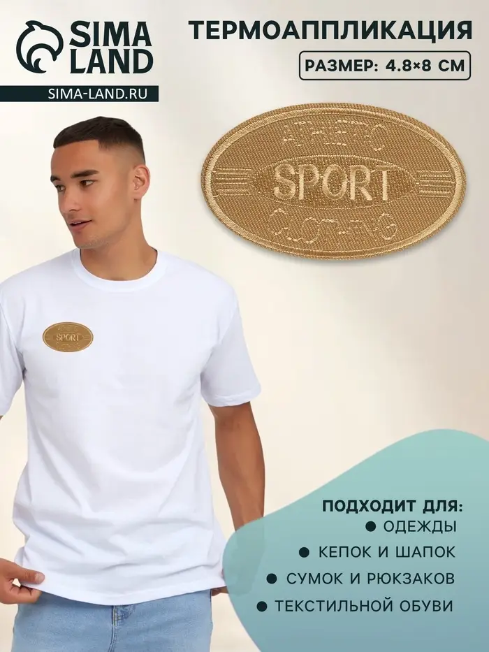 Термоаппликация Sport, 4.8×8 см, светло-бежевая
