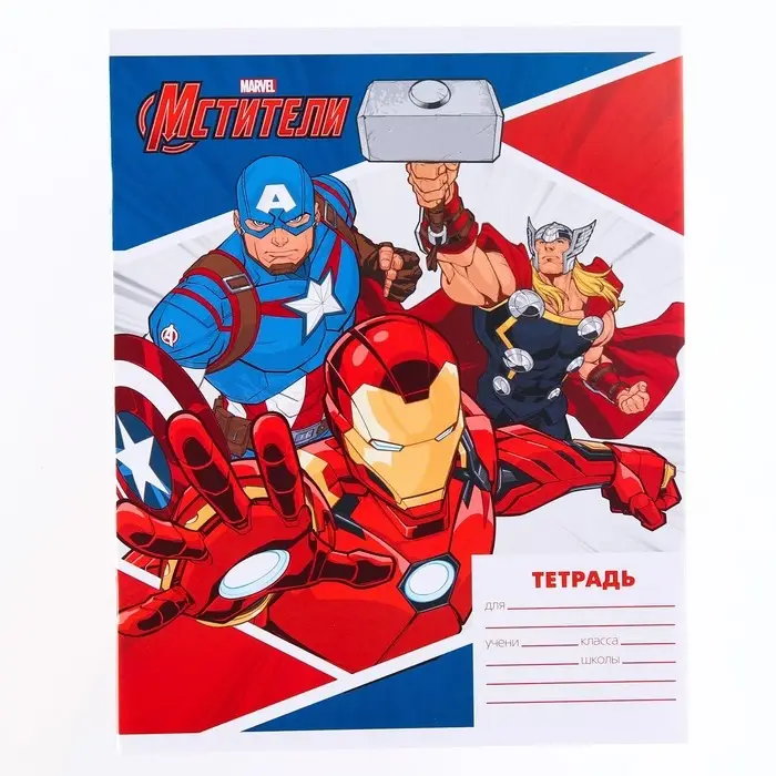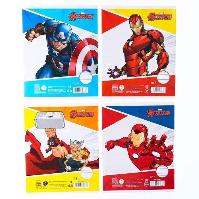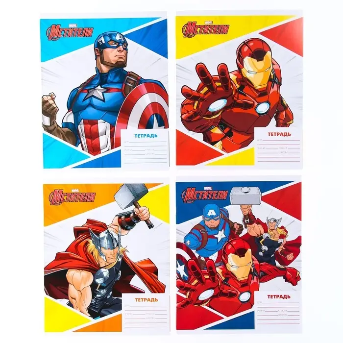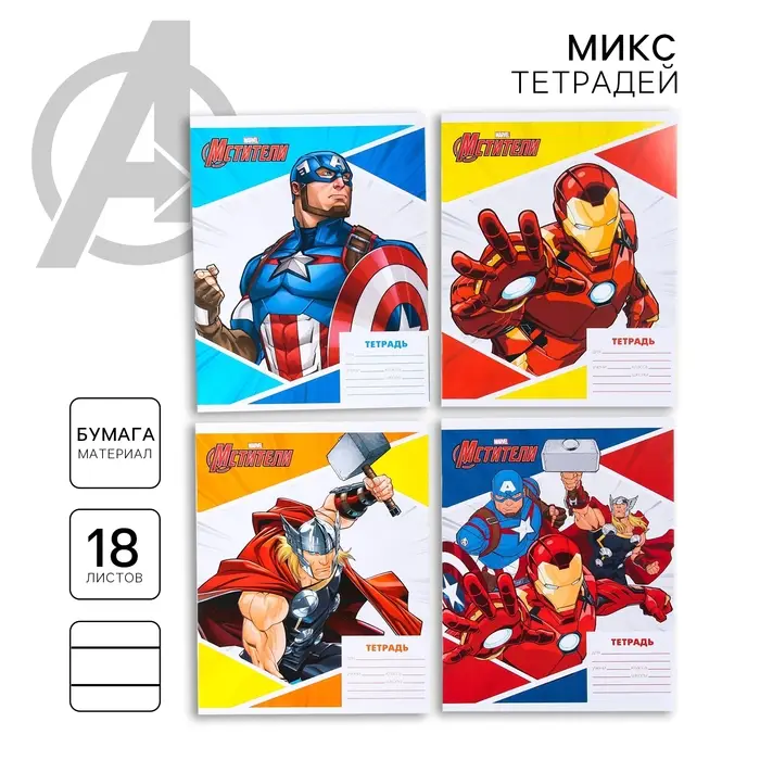 Тетрадь в линейку 18 листов, 4 вида МИКС, обложка мелованная бумага, «Мстители»