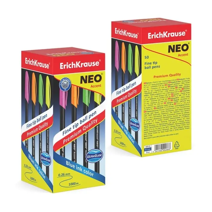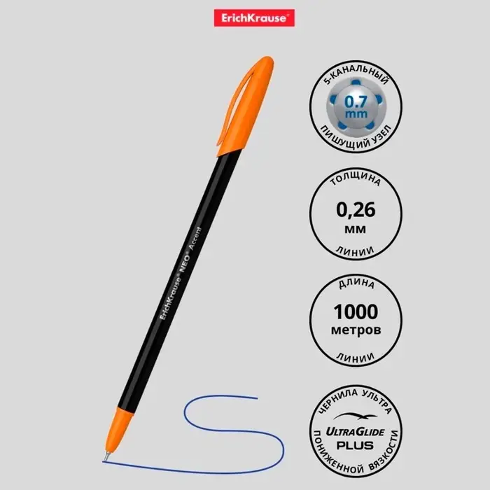 Ручка шариковая ErichKrause Neo Accent, игольчатый узел 0.7 мм, чернила синие, длина линии письма 1000 метров, МИКС