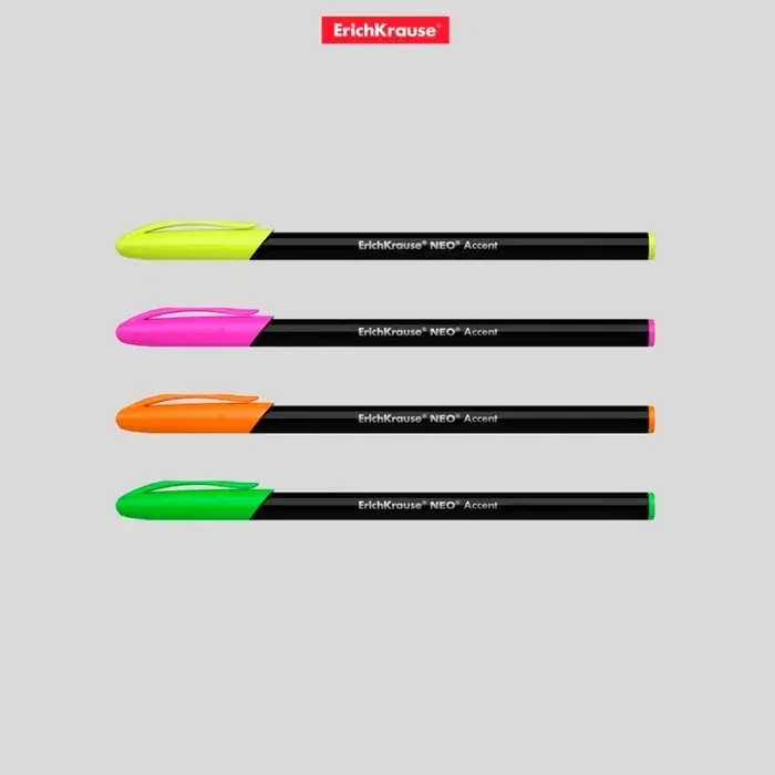 - Ручка имеет матовый непрозрачный круглый корпус черного цвета и вентилируемый колпачок яркого неонового цвета.