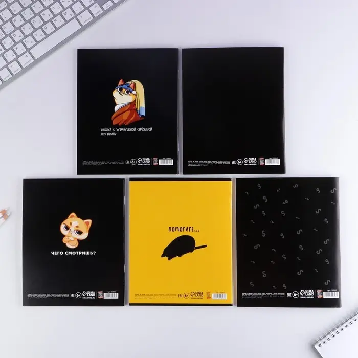 Комплект тетрадей из 5 штук, 48 листов в клетку Calligrata "Meow", обложка мелованный картон, блок офсет