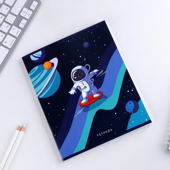 Тетрадь в клетку, 48 л., А5, на скрепке, блок №1 «Космос» МИКС