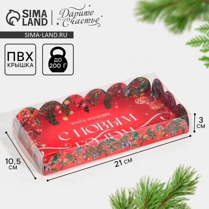 Коробка для кондитерских изделий с пластиковой крышкой «Яркого праздника», 10.5 х 21 х 3 см