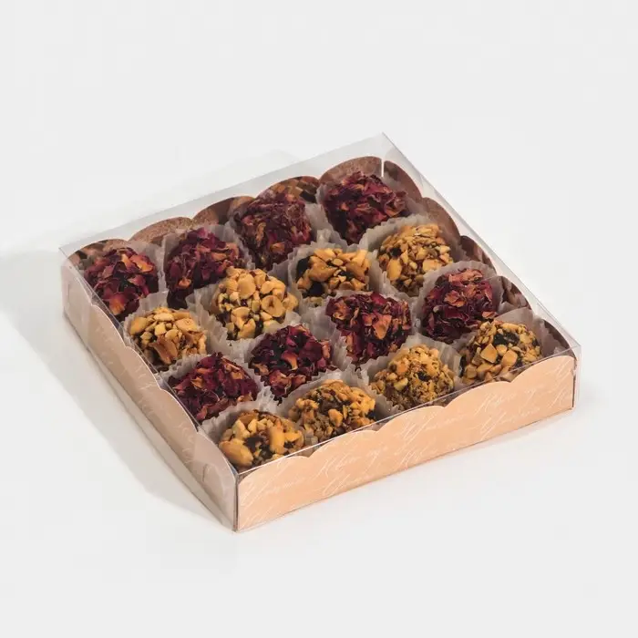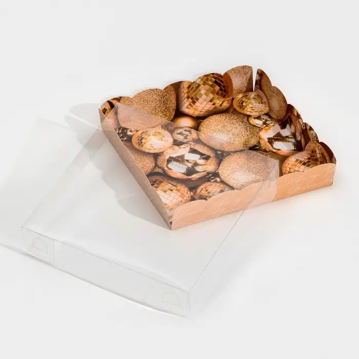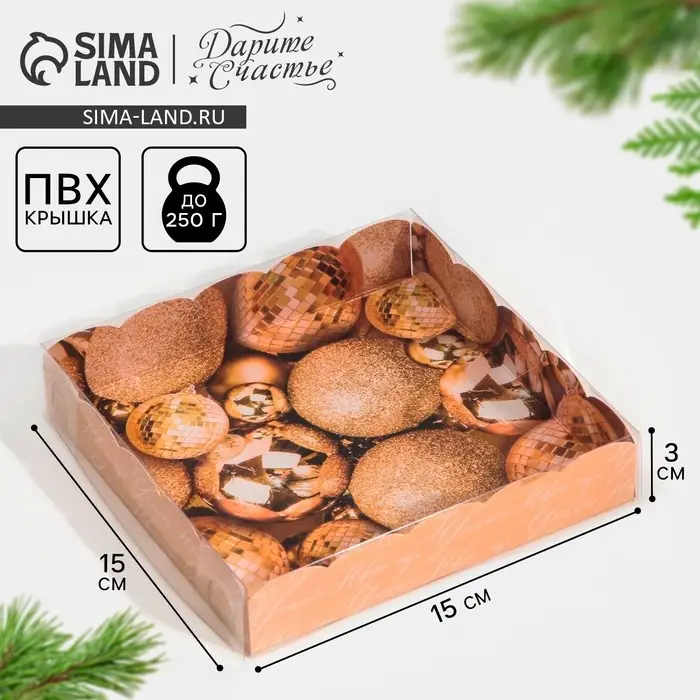 Коробка для кондитерских изделий с пластиковой крышкой «Шары», 15 х 15 х 3 см
