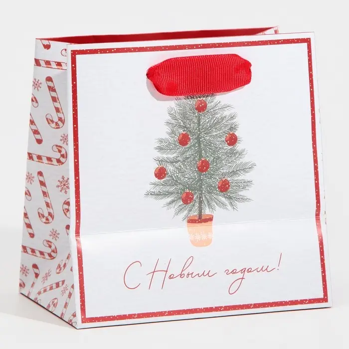 Пакет подарочный новогодний ламинированный квадратный «Новогодние сладости», 14 х 14 х 9 см