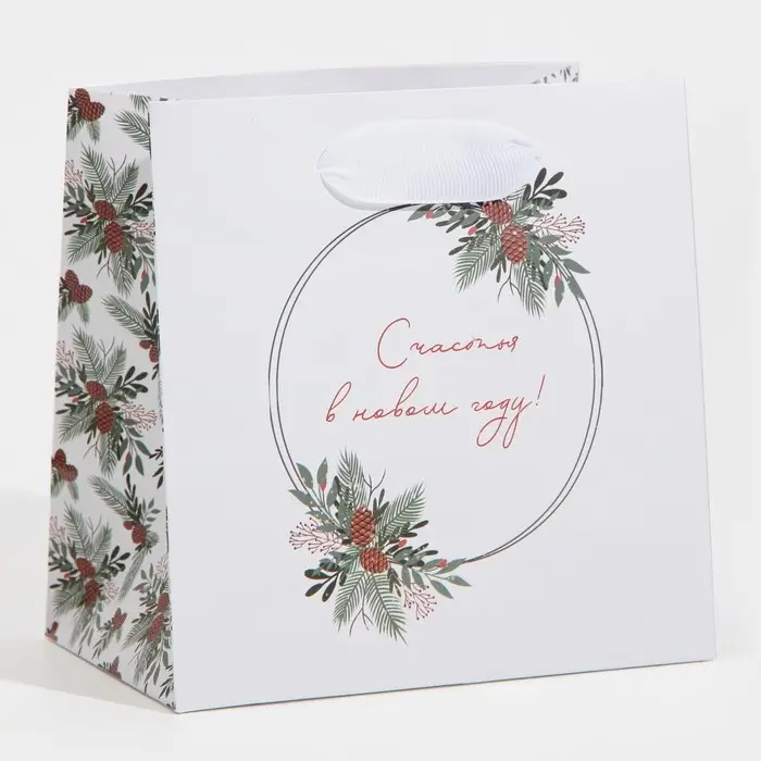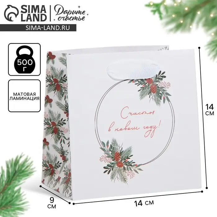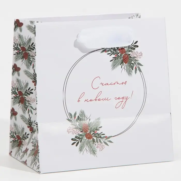 Пакет подарочный новогодний ламинированный квадратный «Зима», 14 х 14 х 9 см