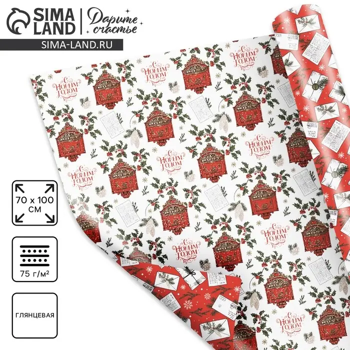 Бумага упаковочная глянцевая двухсторонняя «Почта Ретро», 70 х 100 см
