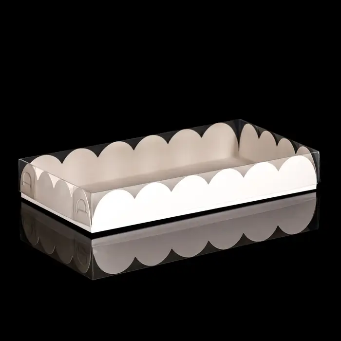 Представляем вашему вниманию стильную и практичную коробку для печенья с прозрачной ПВХ-крышкой – идеальное решение для упаковки различных товаров, включая подарочные наборы, десерты и аксессуары.
