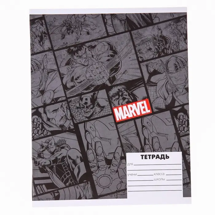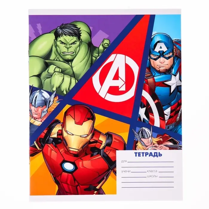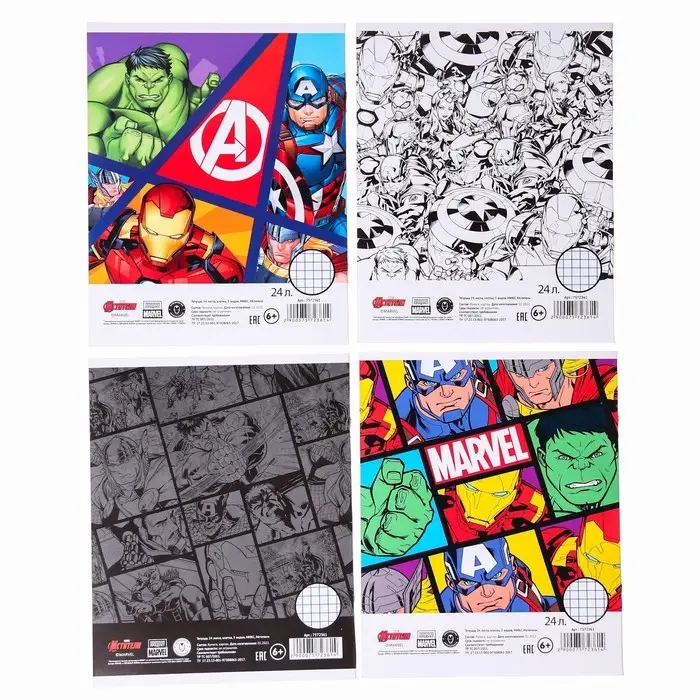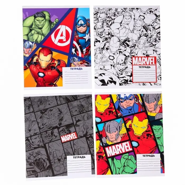 Тетрадь в клетку 24 листа, 4 вида МИКС, обложка мелованный картон, «Мстители»