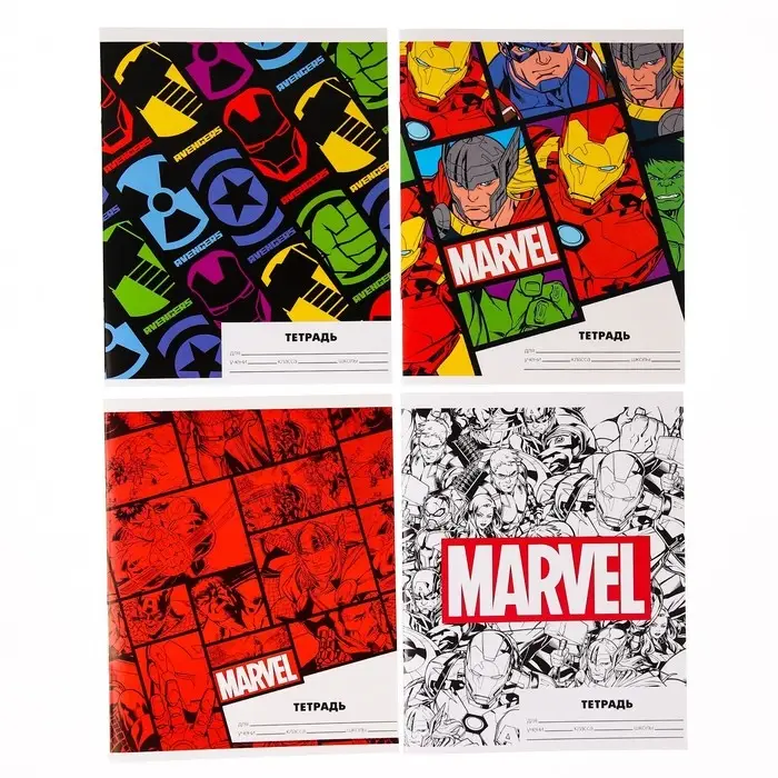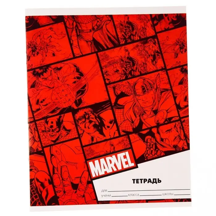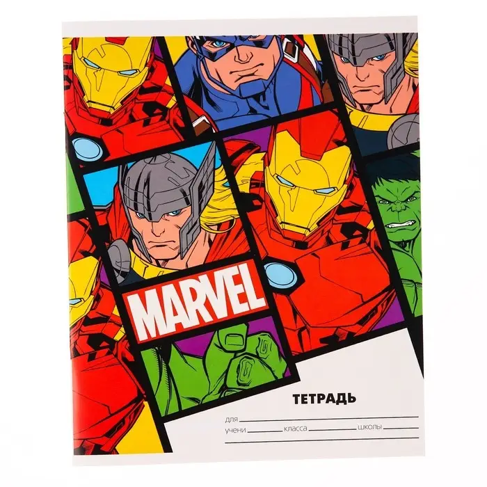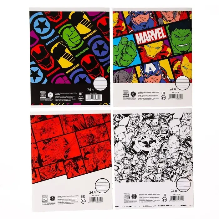 Тетрадь в линейку 24 листа, 5 видов МИКС, обложка мелованный картон, «Мстители»