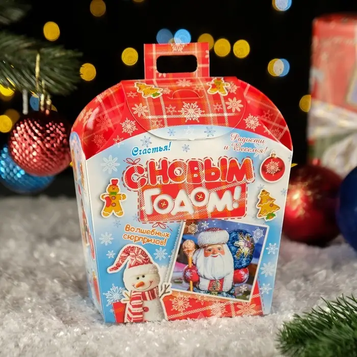 Упаковка для подарка является неотъемлемым атрибутом любого подарка. Подобранная со вкусом упаковка придаст подарку еще большую ценность. Материал изделия - картон. Коробка складная прекрасно подойдет для оформления подарка на - Новый год. Наполнить можно конфетами и различными новогодними сувенирами.