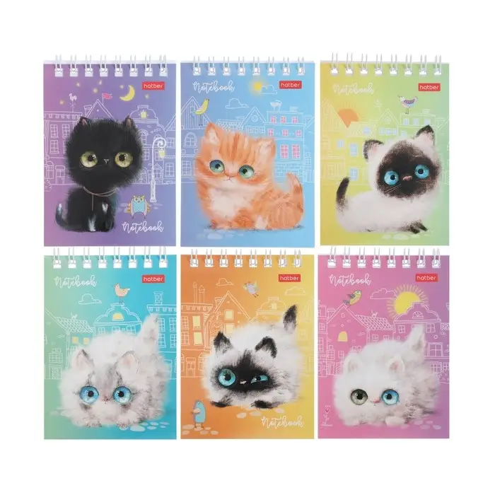Блокнот А7, 40 листов на гребне "Кошарики", обложка мелованный картон, блок 65 г/м2, МИКС