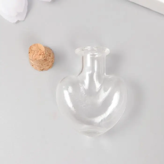 Маленькая стеклянная баночка «Бутыль: сердце с пробкой», для творчества и декора, 1×2.2×2.6 см