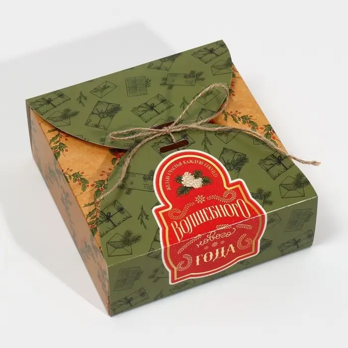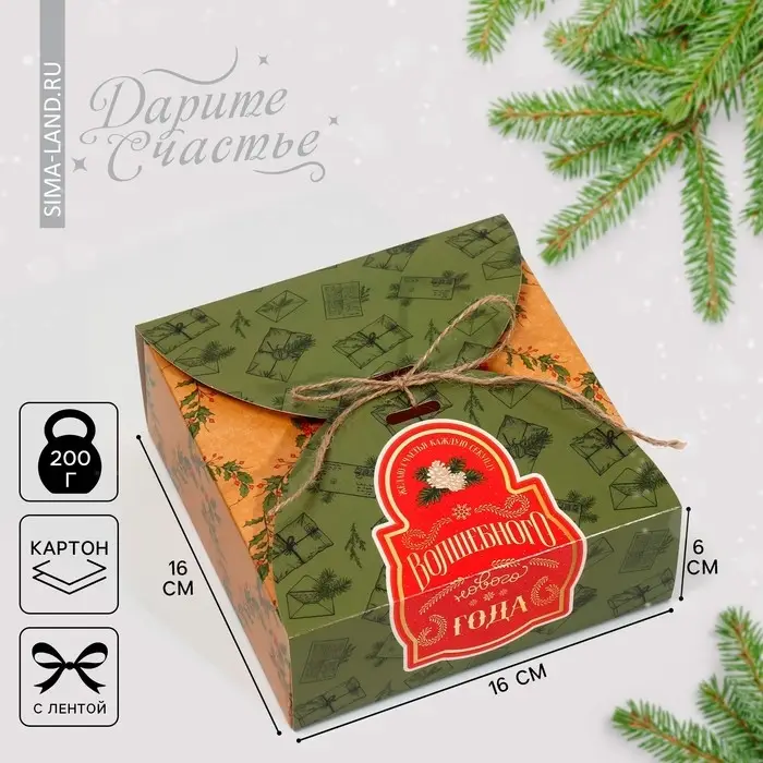 Коробка новогодняя складная «Новогодняя почта», 16 х 16 х 6 см, Новый год