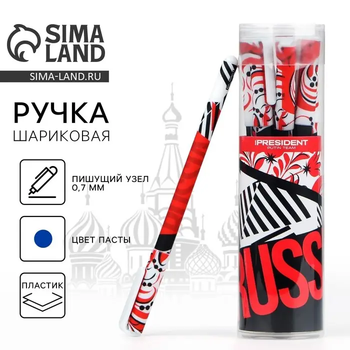 Ручка пластик с колпачком шариковая «Russian», синяя паста, 0.7 мм