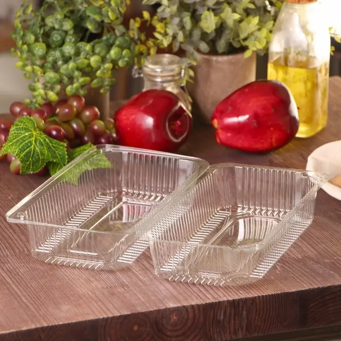 Прозрачный пищевой контейнер с неотделяемой крышкой идеально подходит для хранения и переноски продуктов. Размеры 24×12,9×8,9 см позволяют удобно размещать выпечку, снеки или порционные блюда. Прямоугольная форма обеспечивает компактное хранение.