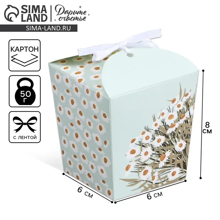 Коробка бонбоньерка, упаковка подарочная, «Ромашки», 8 х 7.5 х 6 см см